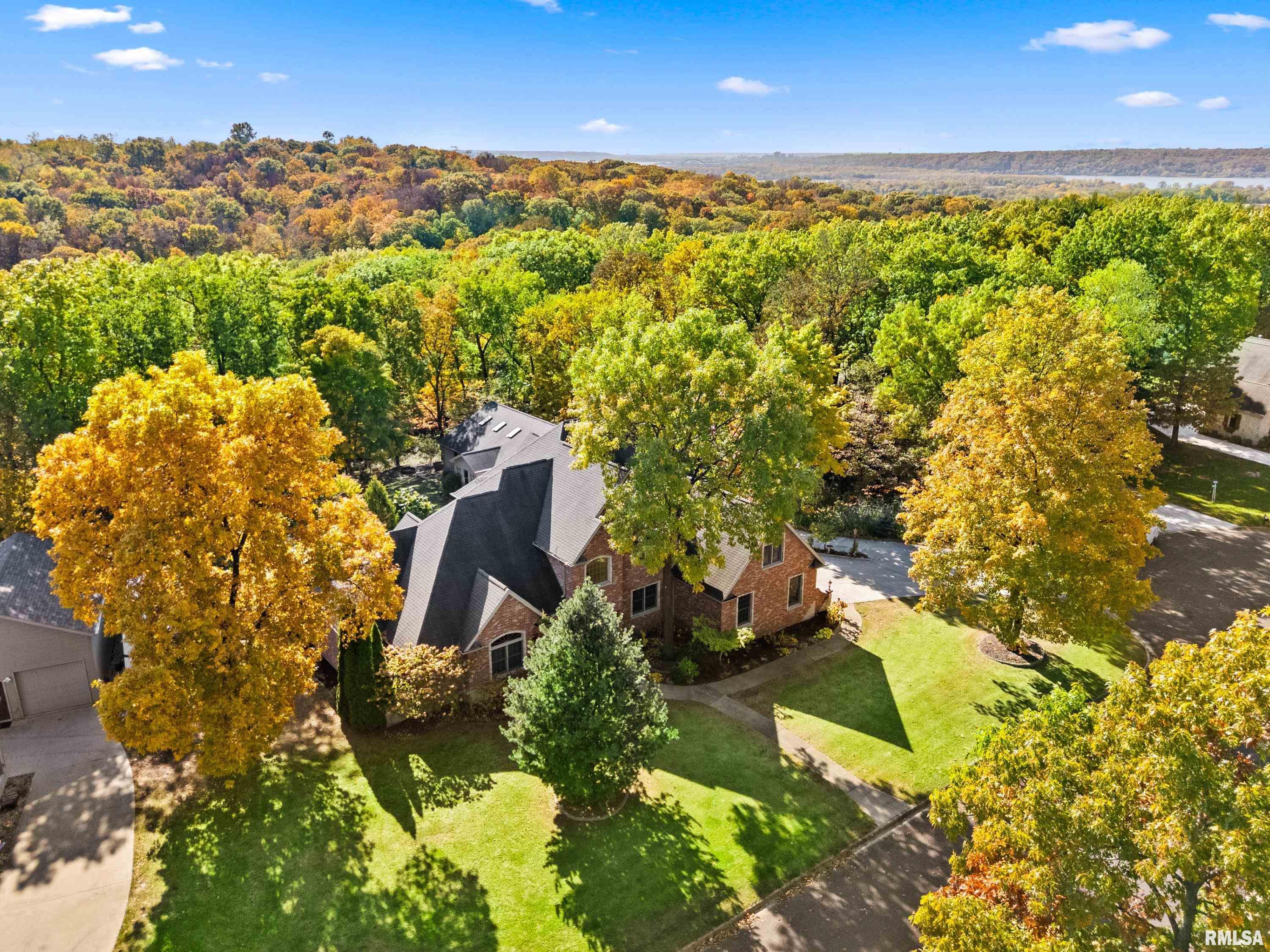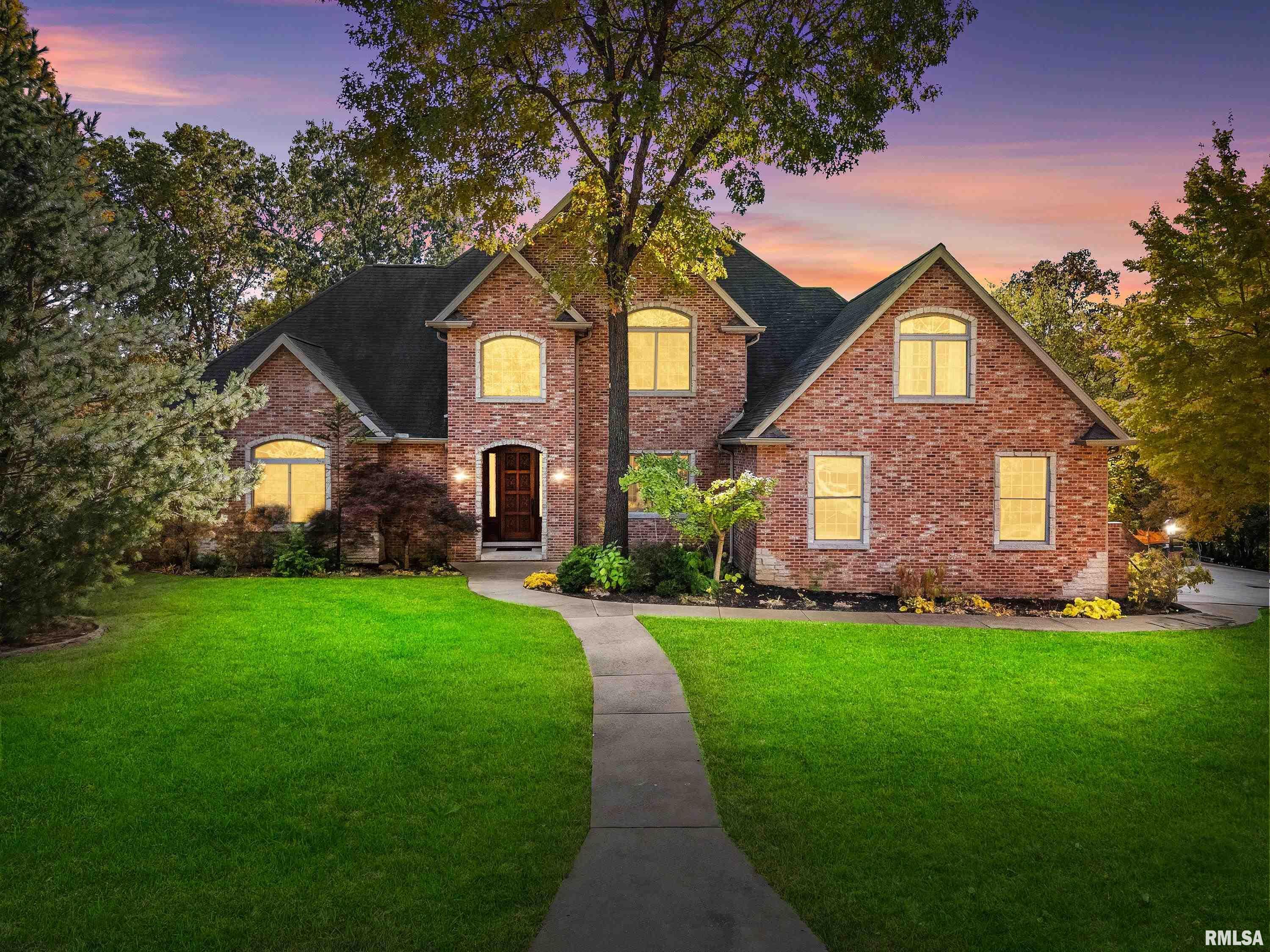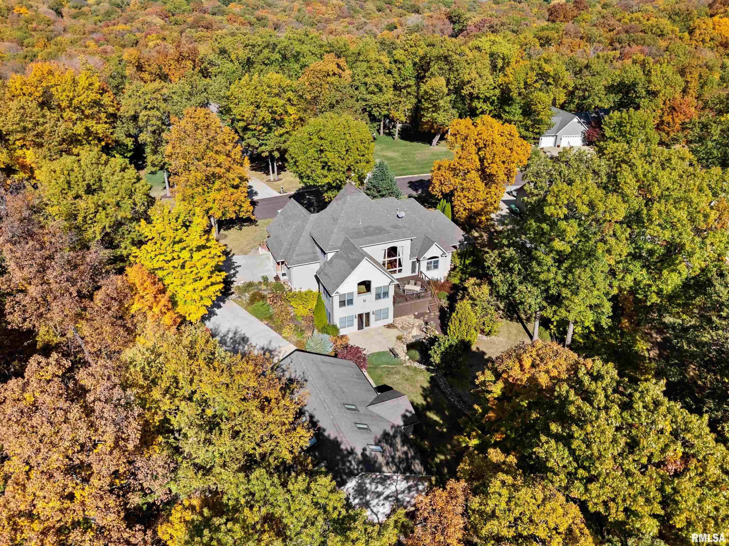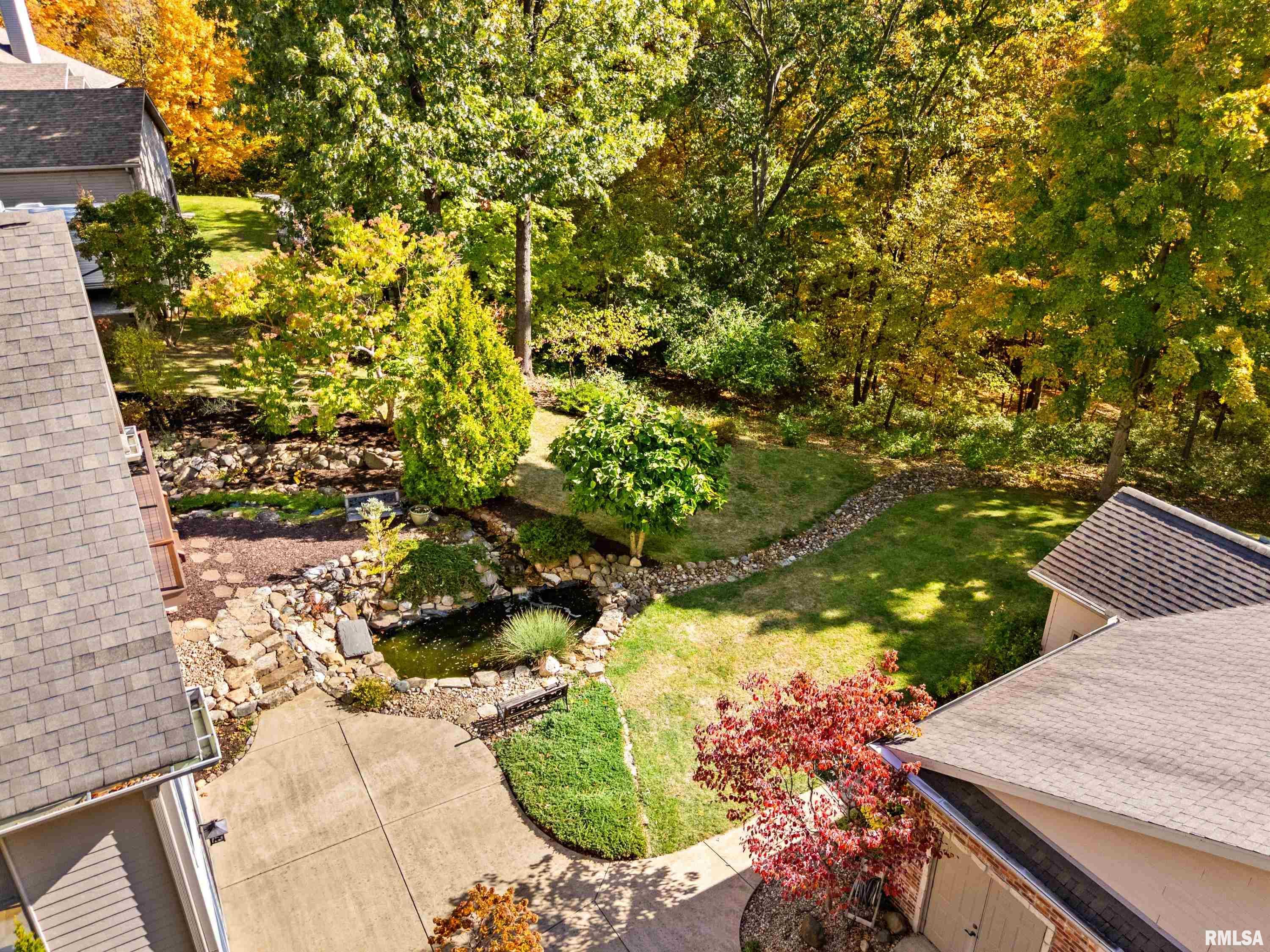 This exquisite custom-built home showcases exceptional craftsmanship & attention to detail throughout. From the moment you enter, the grand 2-story foyer w/its 10' carved Indonesian Mahogany door & inlay mosaic floor sets the tone for the elegance within. Imported Campus wood floors flow through the main level, complemented by tray ceilings w/mood lighting that add warmth & sophistication. The gourmet kitchen features a Viking 6-burner range, GE Monogram refrigerator, granite countertops, & a marble and mosaic backsplash. A custom-made bar with pendant lighting, sink, and refrigerator creates the perfect space for entertaining. The main-floor primary suite offers dual walk-in closets, a custom vanity & shelving. Custom cabinetry w/soft-close drawers & hidden storage compartments can be found thru out the home, along w/built-in office furniture & wardrobes. The family room includes a theater projection system w/surround sound for the ultimate movie experience. The finished basement, detached workshop & attached garage all feature heated floors. The workshop includes a powder room, office, and separate 200-amp electrical service, while the home boasts a 400-amp service and efficient GeoThermal HVAC system. Outdoors, enjoy a serene koi pond, fire pit patio, and beautifully landscaped grounds overlooking peaceful woods. Every inch of this home has been thoughtfully designed and lovingly maintained. Ask for a full brochure and list of optional custom furnishings.