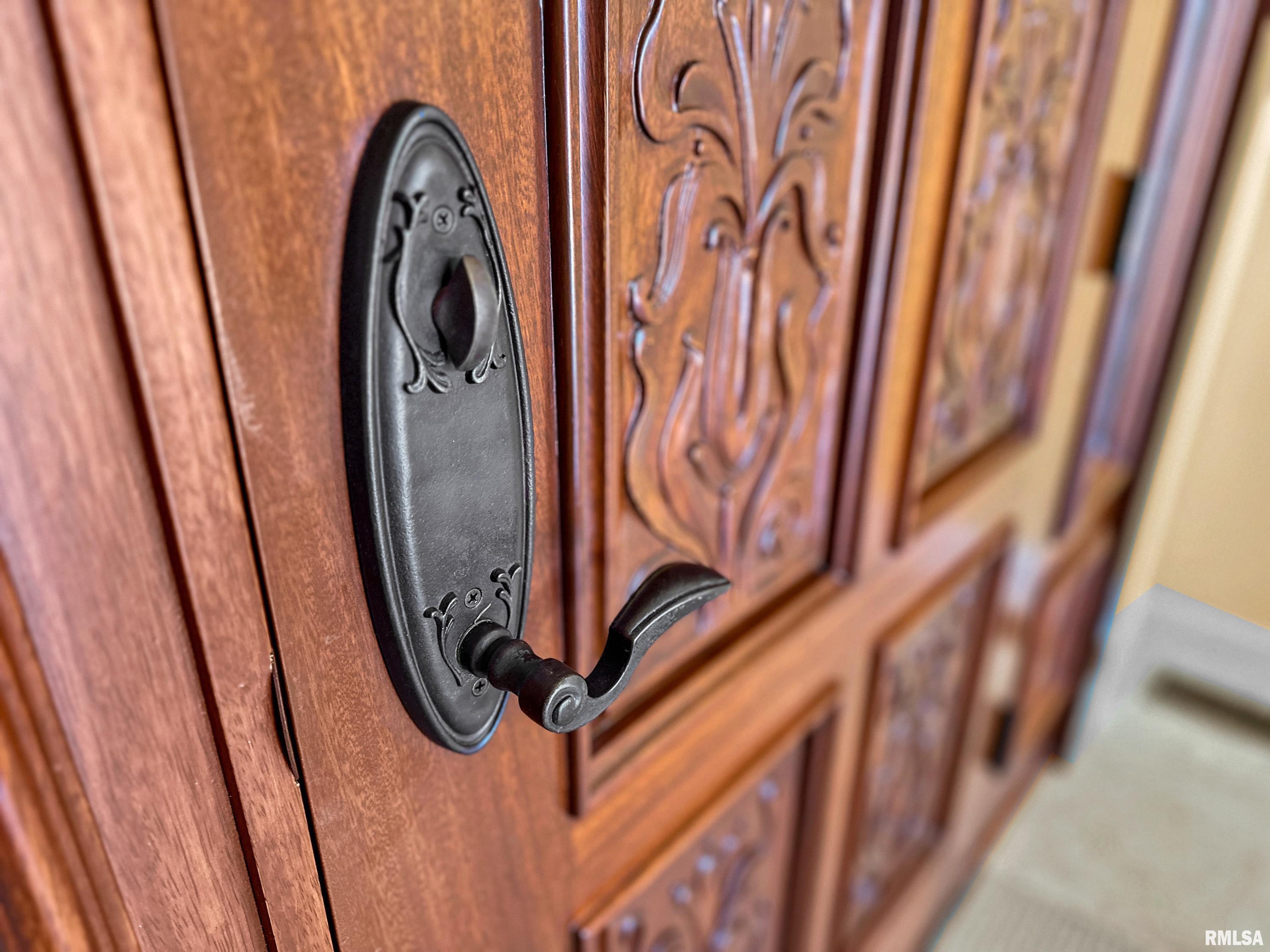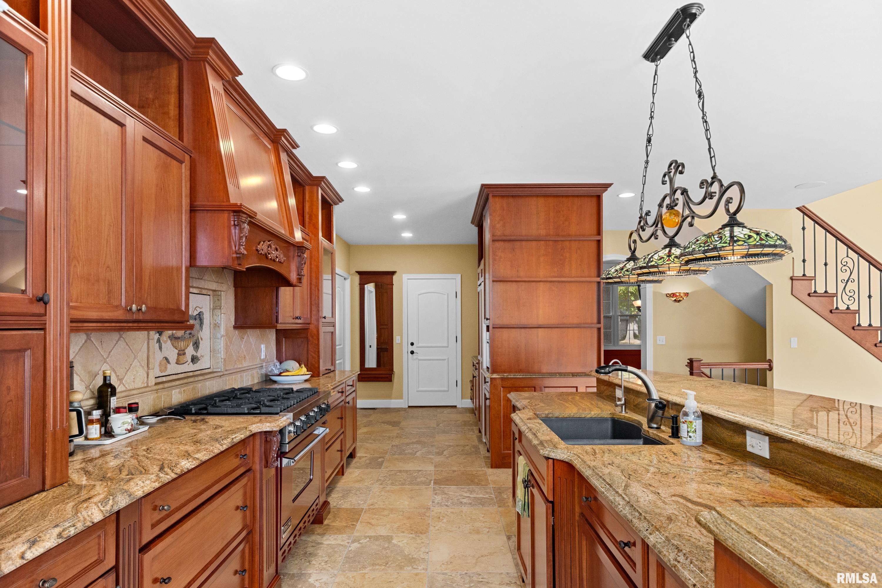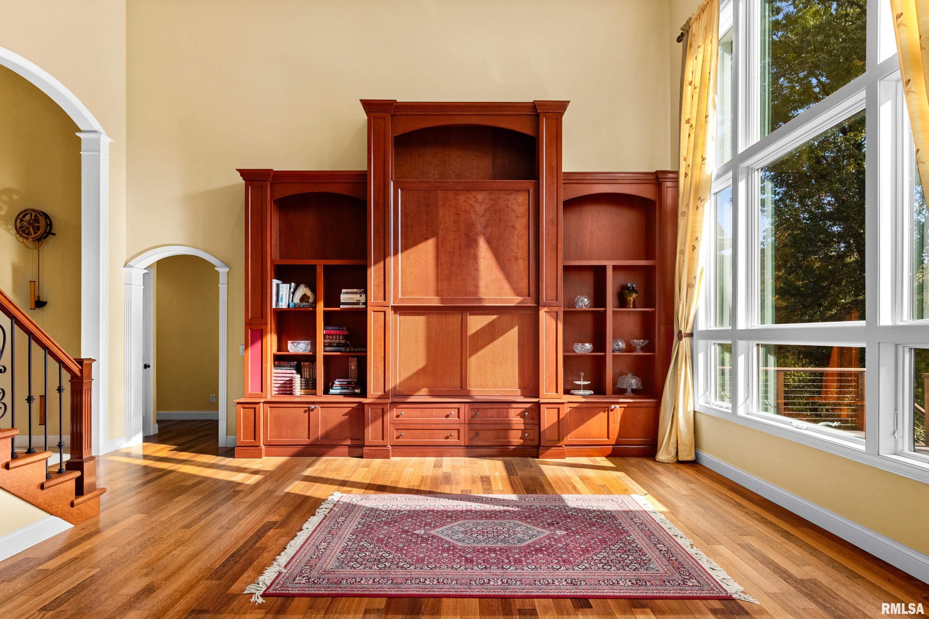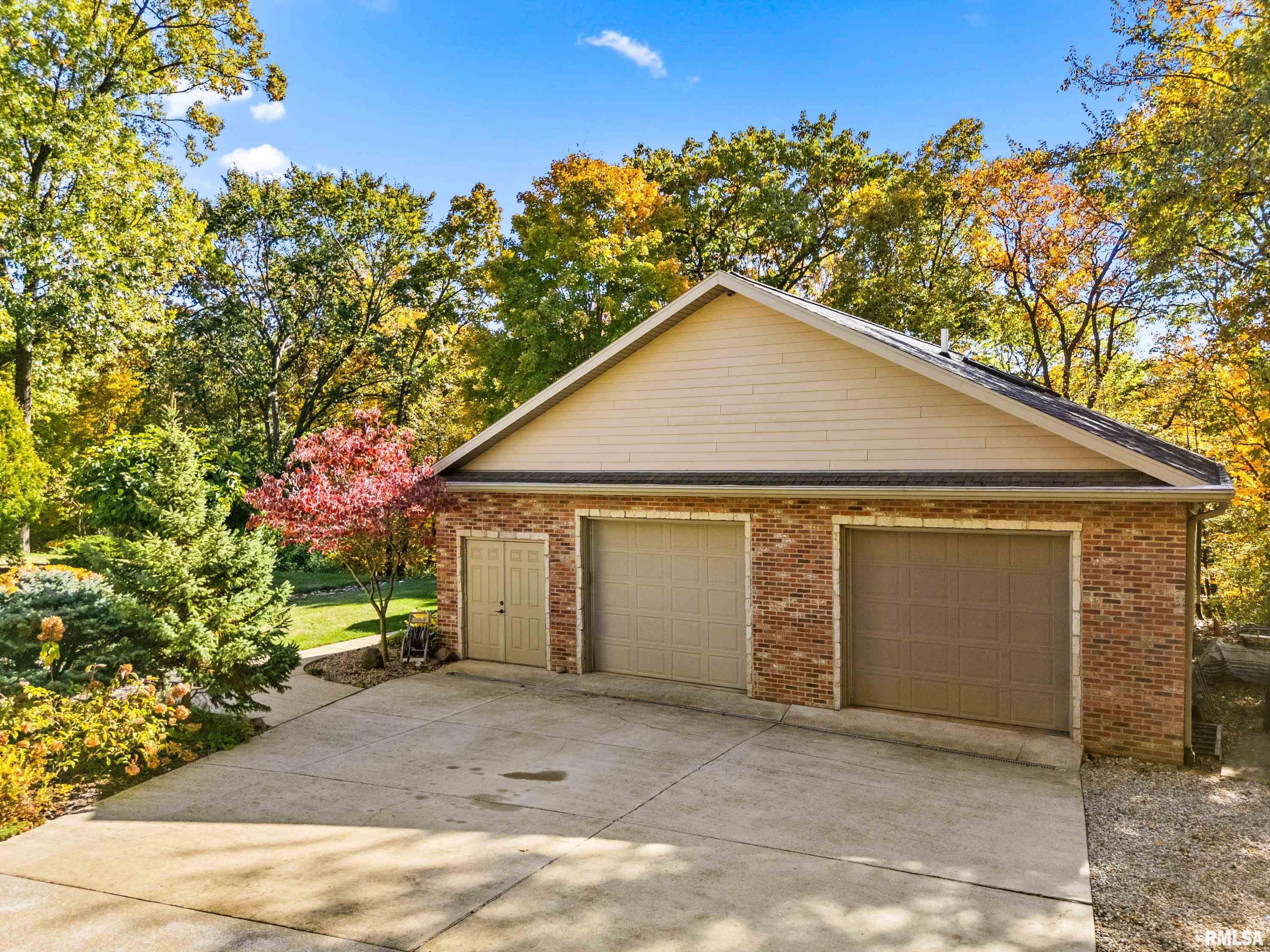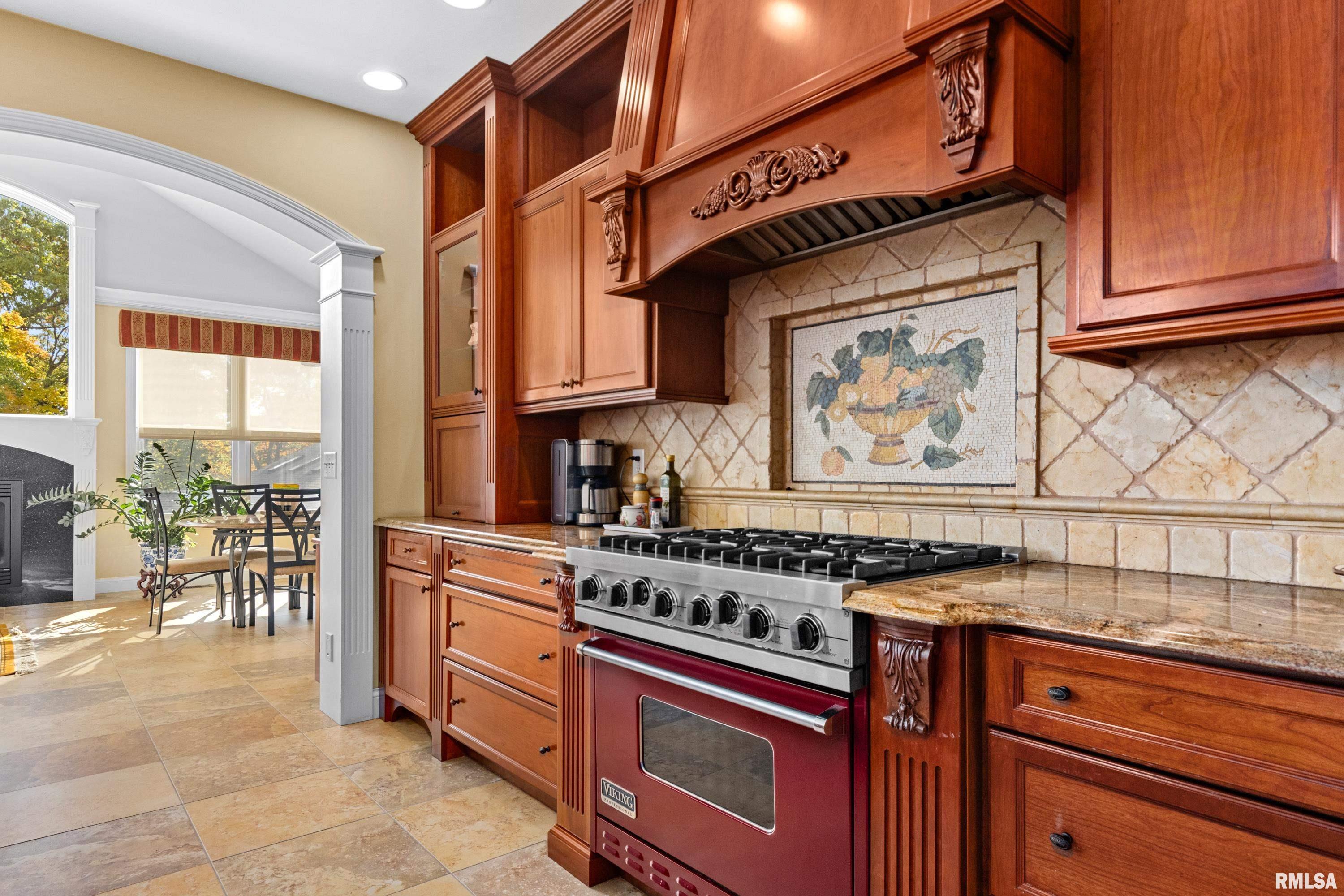 This exquisite custom-built home showcases exceptional craftsmanship & attention to detail throughout. From the moment you enter, the grand 2-story foyer w/its 10' carved Indonesian Mahogany door & inlay mosaic floor sets the tone for the elegance within. Imported Campus wood floors flow through the main level, complemented by tray ceilings w/mood lighting that add warmth & sophistication. The gourmet kitchen features a Viking 6-burner range, GE Monogram refrigerator, granite countertops, & a marble and mosaic backsplash. A custom-made bar with pendant lighting, sink, and refrigerator creates the perfect space for entertaining. The main-floor primary suite offers dual walk-in closets, a custom vanity & shelving. Custom cabinetry w/soft-close drawers & hidden storage compartments can be found thru out the home, along w/built-in office furniture & wardrobes. The family room includes a theater projection system w/surround sound for the ultimate movie experience. The finished basement, detached workshop & attached garage all feature heated floors. The workshop includes a powder room, office, and separate 200-amp electrical service, while the home boasts a 400-amp service and efficient GeoThermal HVAC system. Outdoors, enjoy a serene koi pond, fire pit patio, and beautifully landscaped grounds overlooking peaceful woods. Every inch of this home has been thoughtfully designed and lovingly maintained. Ask for a full brochure and list of optional custom furnishings.